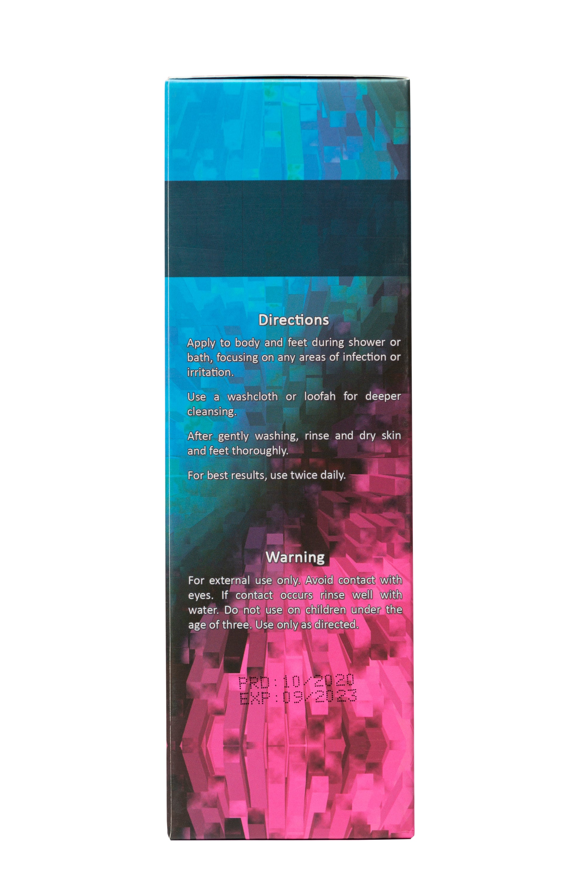 Remove the safety block from the pump, then apply to body and feet during shower or bath, focusing on any areas of infection or irritation. Use a washcloth or loofah for deeper cleansing. After gently washing, rinse and dry skin and feet thoroughly. For best results, use twice daily.